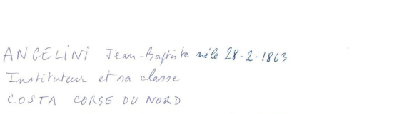 ANGELINI Jean-Baptiste né le 1er mars 1863 à Giuncaggio (Haute-Corse) et décédé le 28 mai 1939 à Giuncaggio (Haute-Corse).